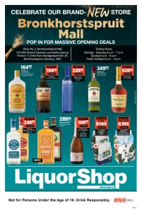 Page 1 POP IN FOR MASSIVE OPENING DEALS CELEBRATE OUR BRAND- STORE GNLSLCALJU/E_REV WITH CARD R145 2 x 6x330ml Castle Lite Beer NRB SAVE R45 2 FOR Trading Hours: Monday - Saturday 8 a.m. - 7 p.m. Sunday 8 a.m. - 6 p.m. Public Holidays 8 a.m. - 6 p.m. Shop No. 2, Bronkhorstspruit Mall, C/O R25 Road & General Louis Botha Avenue, Portion 17 of the Farm Nooitgedacht 525-JR, Bronkhorstspruit, Gauteng, 1020. Not for Persons Under the Age of 18. Drink Responsibly. 34999 750ml Jameson Triple Distilled Irish Whiskey 28999 750ml each Jägermeister Original/Orange Liqueur 16499 750ml Gordon’s London Dry/ Pink Berry/Sunset Orange Gin Each WITH CARD 52999 Hennessy V.S. Cognac SAVE R90 750ml WITH CARD R195 2 x 6x330ml Savanna Premium Dry/ Light Cider NRB SAVE R55 ANY 2 FOR WITH CARD 24999 Olmeca Reposado/Silver Tequila SAVE R80 750ml each WITH CARD 22999 Skyy Vodka All Variants Each SAVE R50 750ml NEW! WITH CARD 19999 Klipdrift Premium Brandy SAVE R50 750ml WITH CARD 16999 L’Ormarins Cap Classique · Brut · Brut Rosé Sparkling Wine Each SAVE R40 750ml